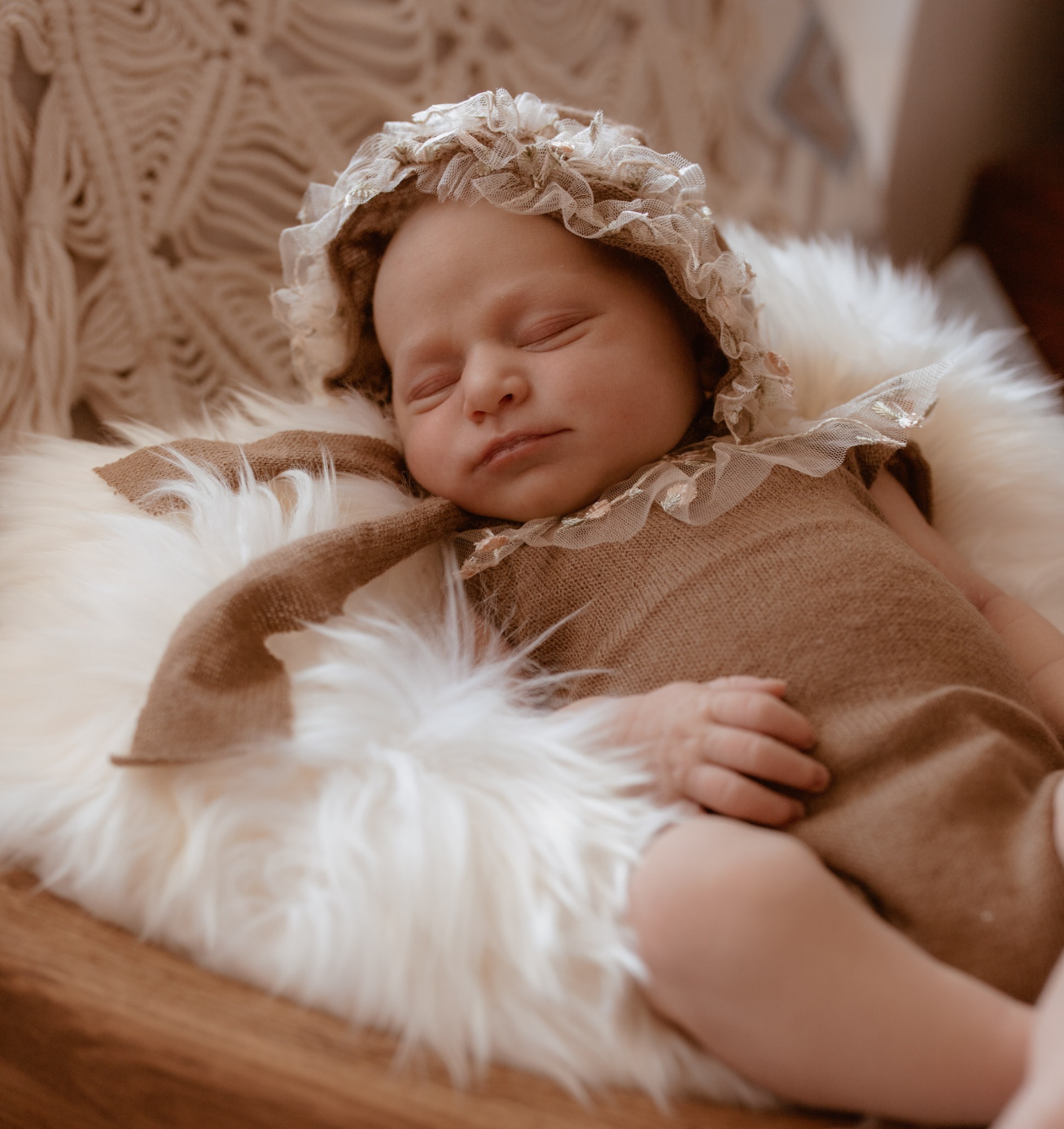 Ein Neugeborenen Shooting findet bequem und gemütlich in Eurem vertrauten Zuhause statt. Somit habt ihr keinen Stress und müsst an nichts denken. Auch hier bringe ich gerne meine mobile Hintergrund - Leinwand inklusive passendem Boden mit. Ich biete Euch Zugang zu meinem exklusiven Kundenkleiderschrank, welcher süße und außergewöhnliche Newborn Outfits aus erstklassigem Material beinhaltet, sowie zum Teil handgemachte Körbchen und Dekoartikel.